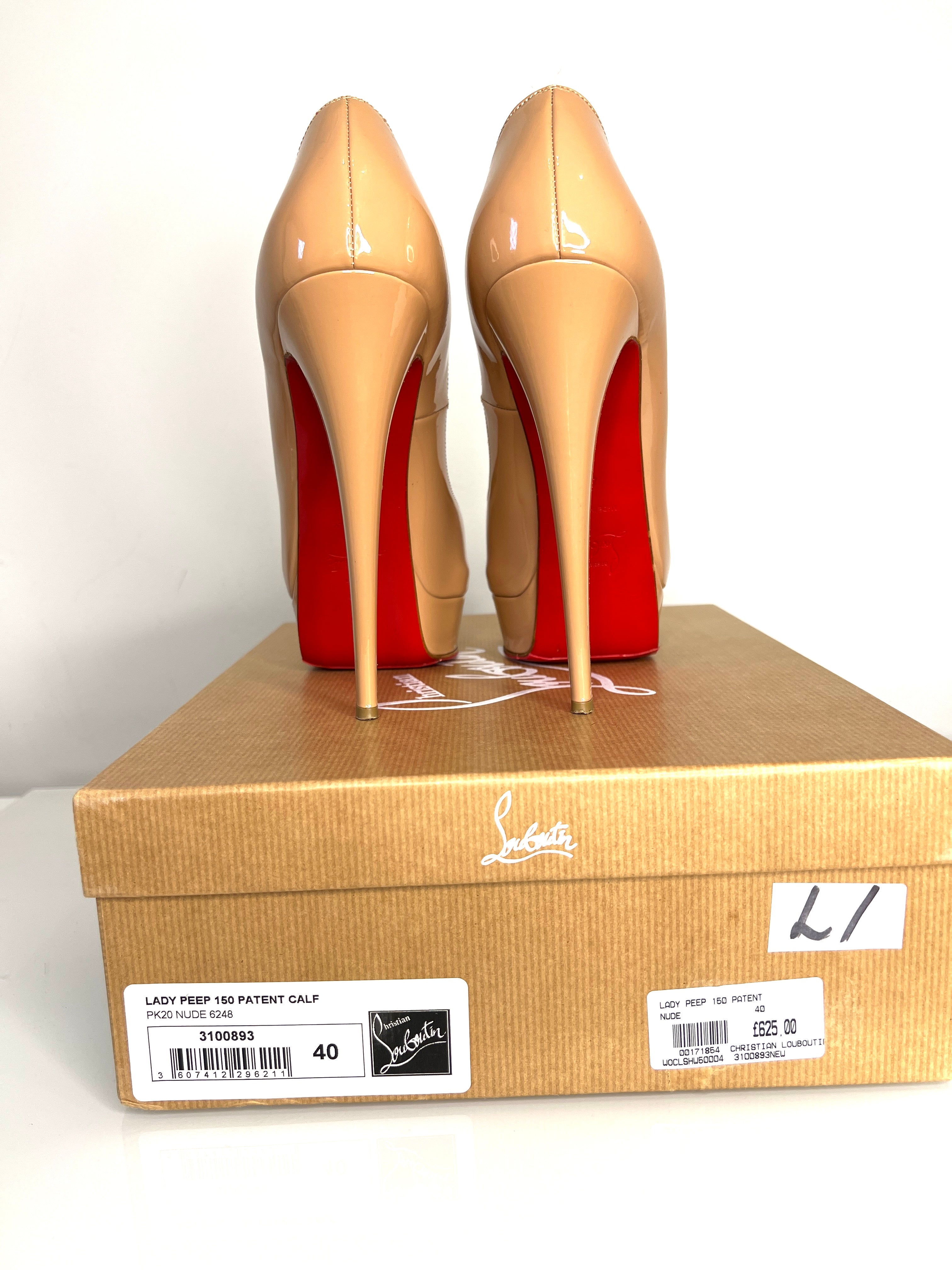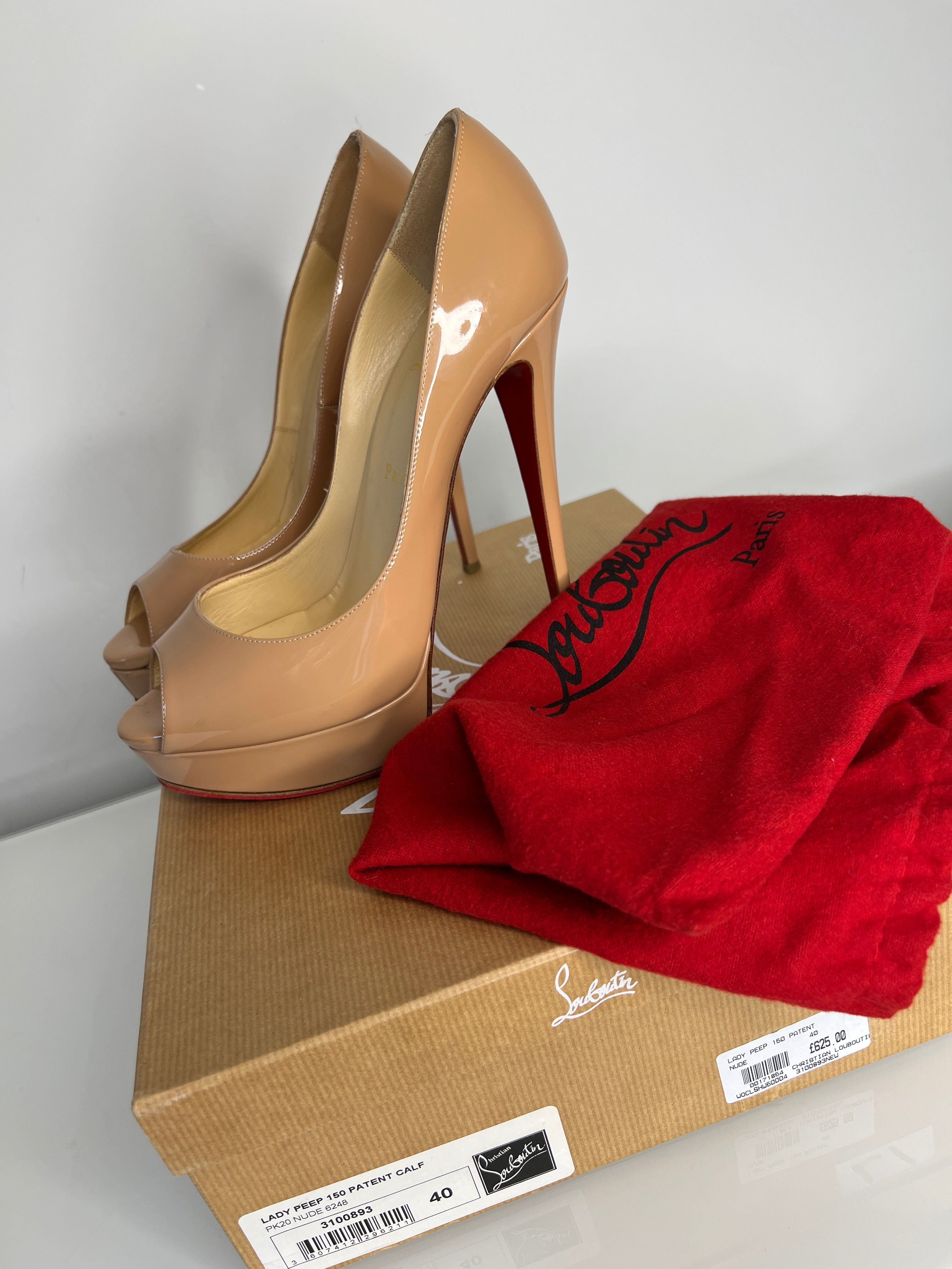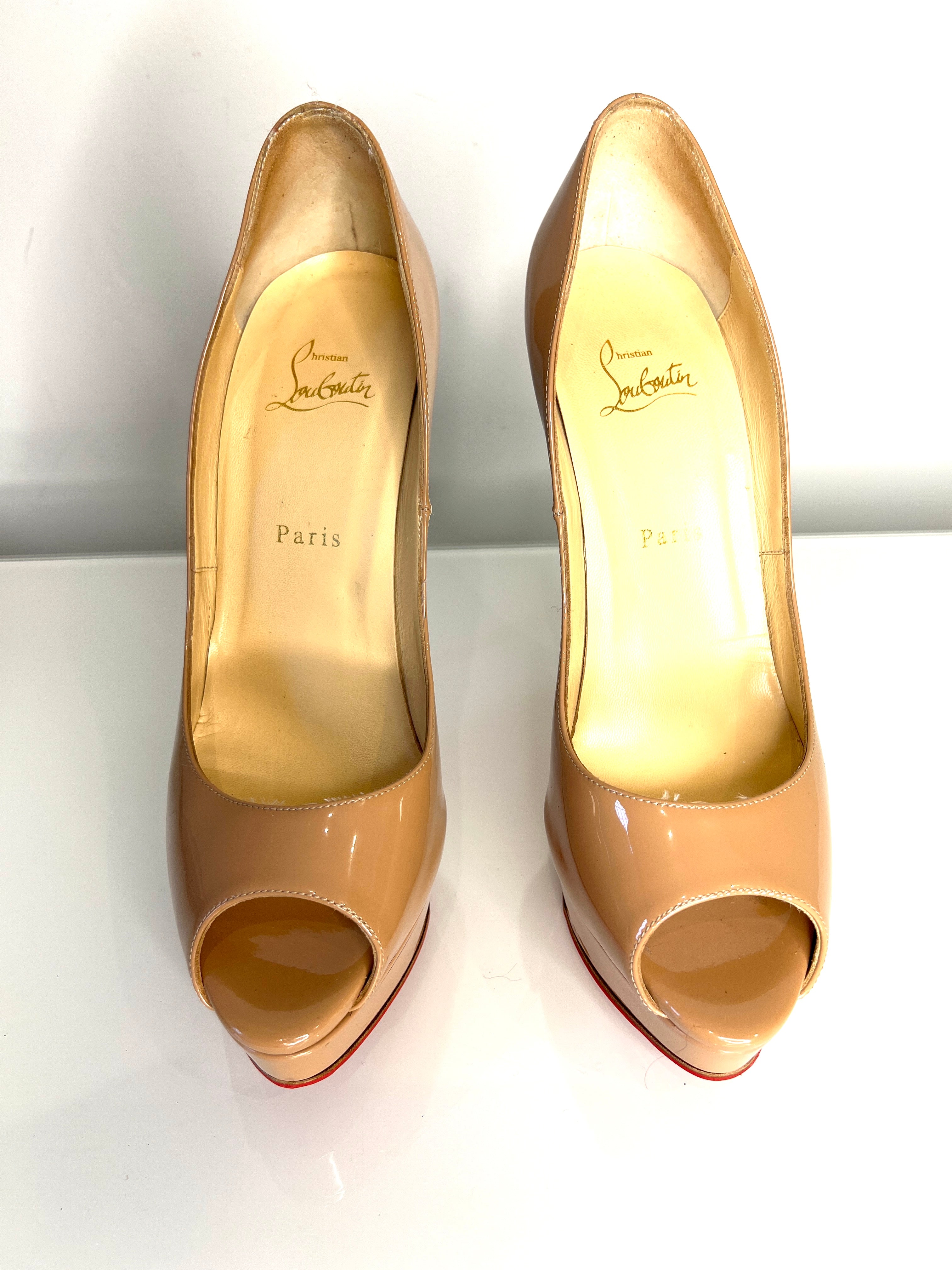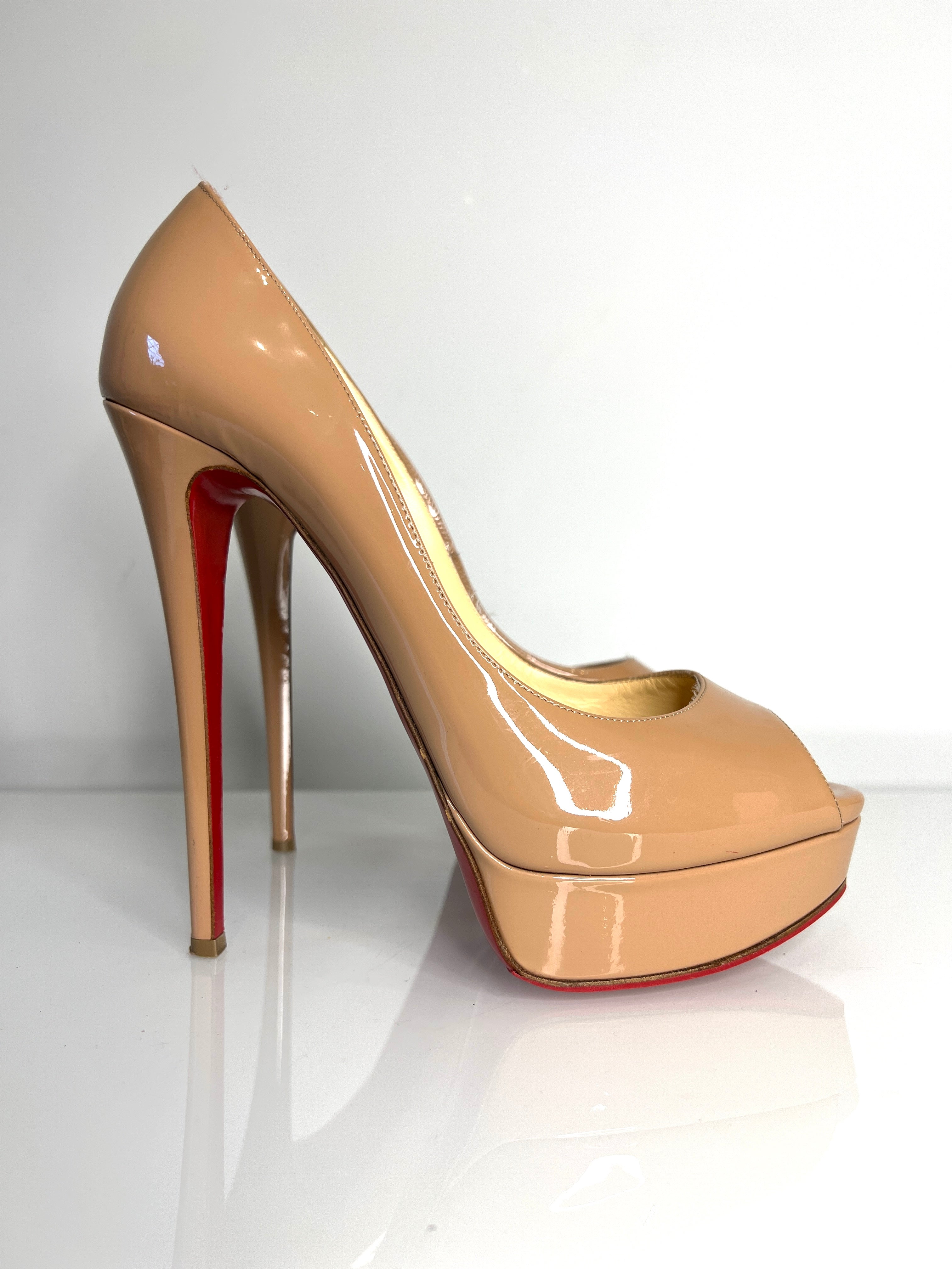 Christian Louboutin Lady Peep 150 Nude Patent Platform Heels 40 UK7