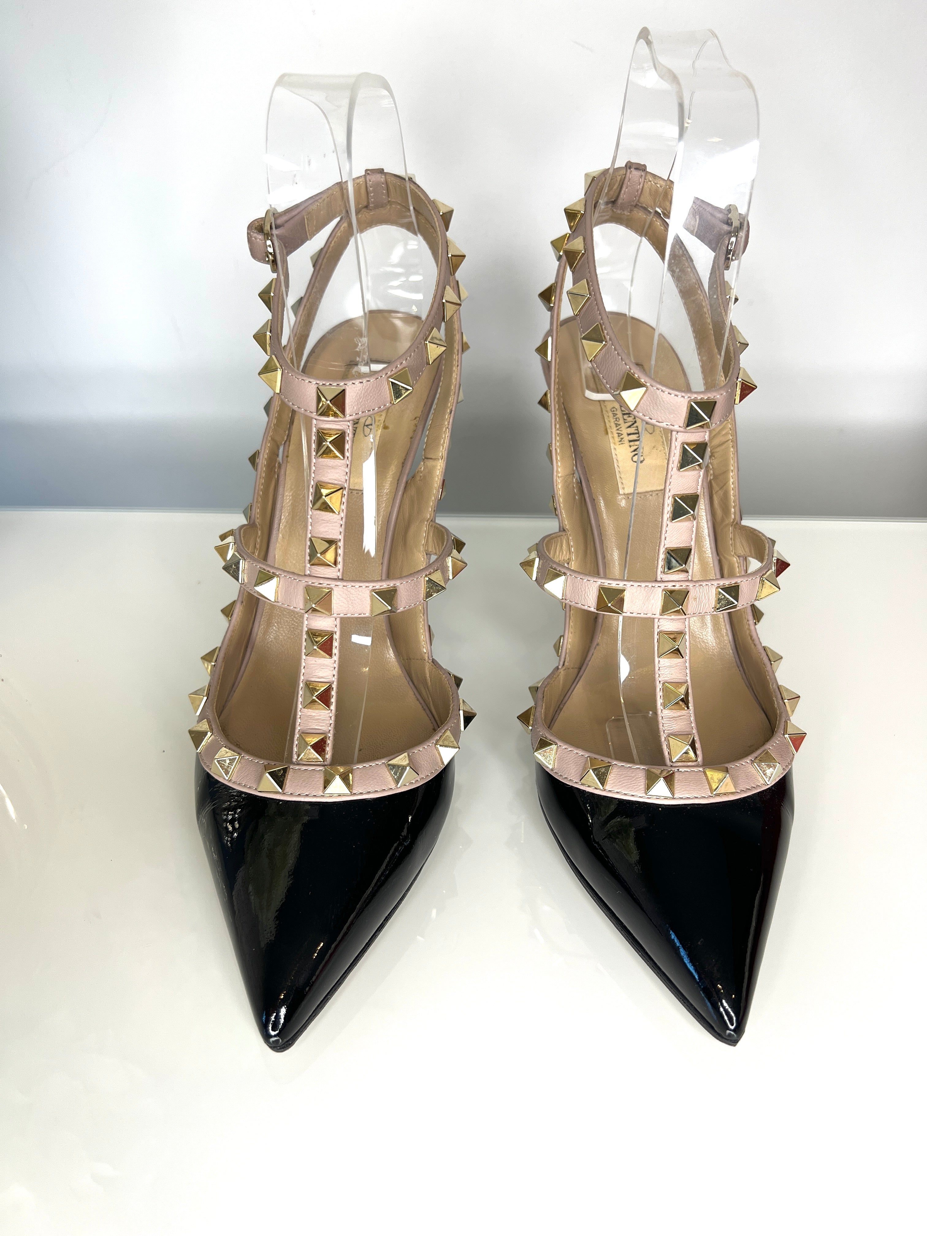 Valentino Garavani Rockstud 100 Black Patent Heels 38 UK5