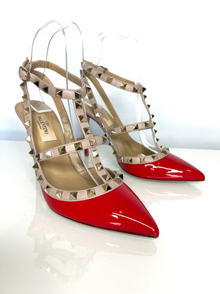 Valentino Garavani Rockstud 100 Red Patent Leather Caged Heels 37 UK4