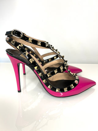 Valentino Garavani Rockstud 100 Pink Patent Sandals Heels 41 UK8