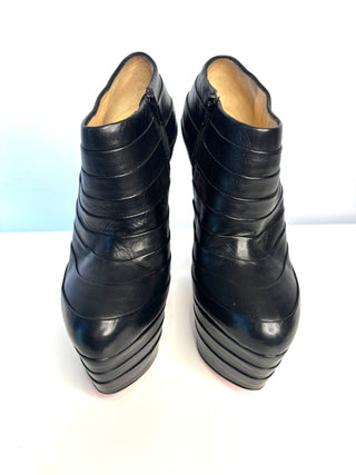 Christian Louboutin Psybootie Black Lace Patent Leather Ankle Boots 37 UK4