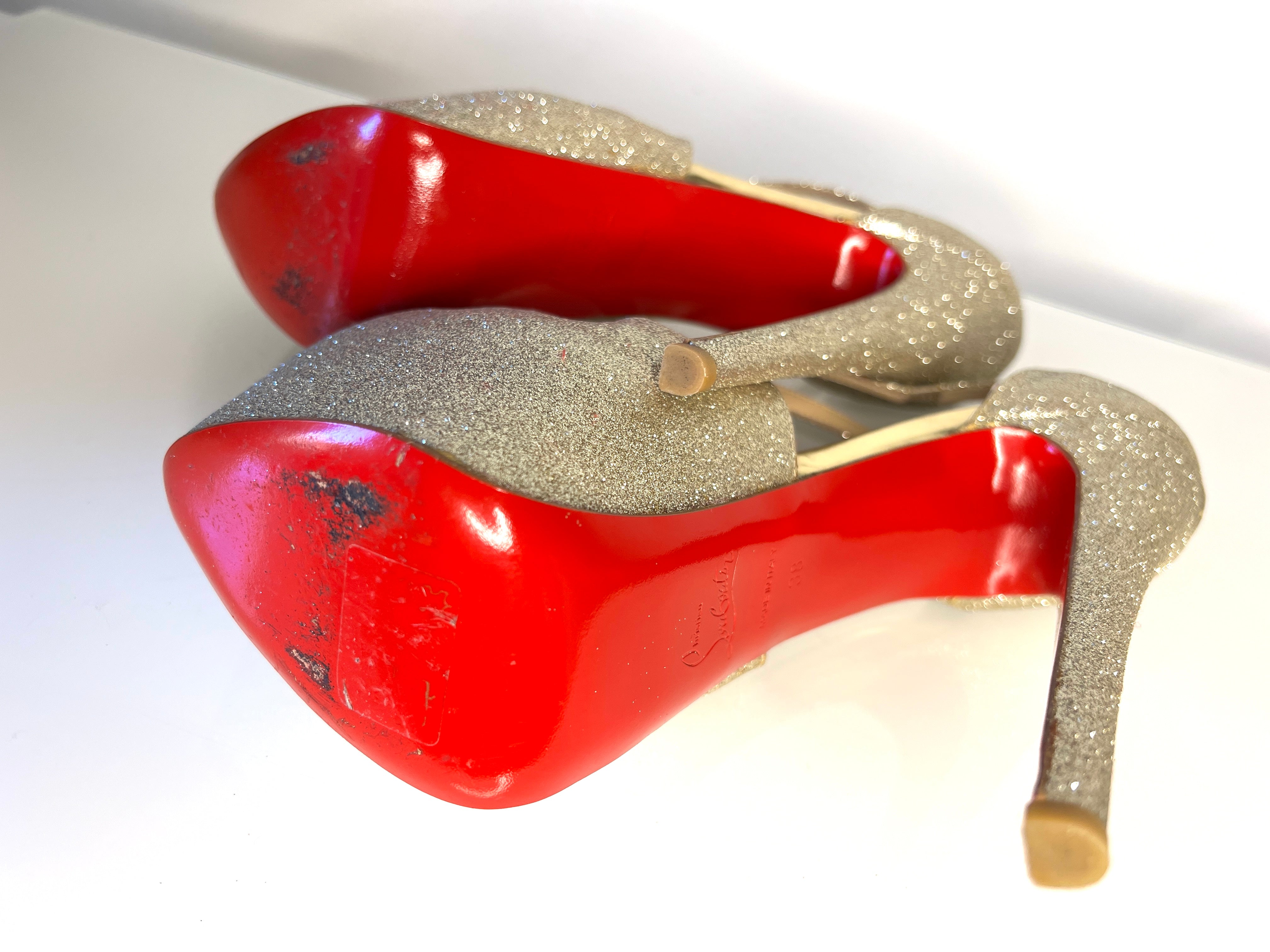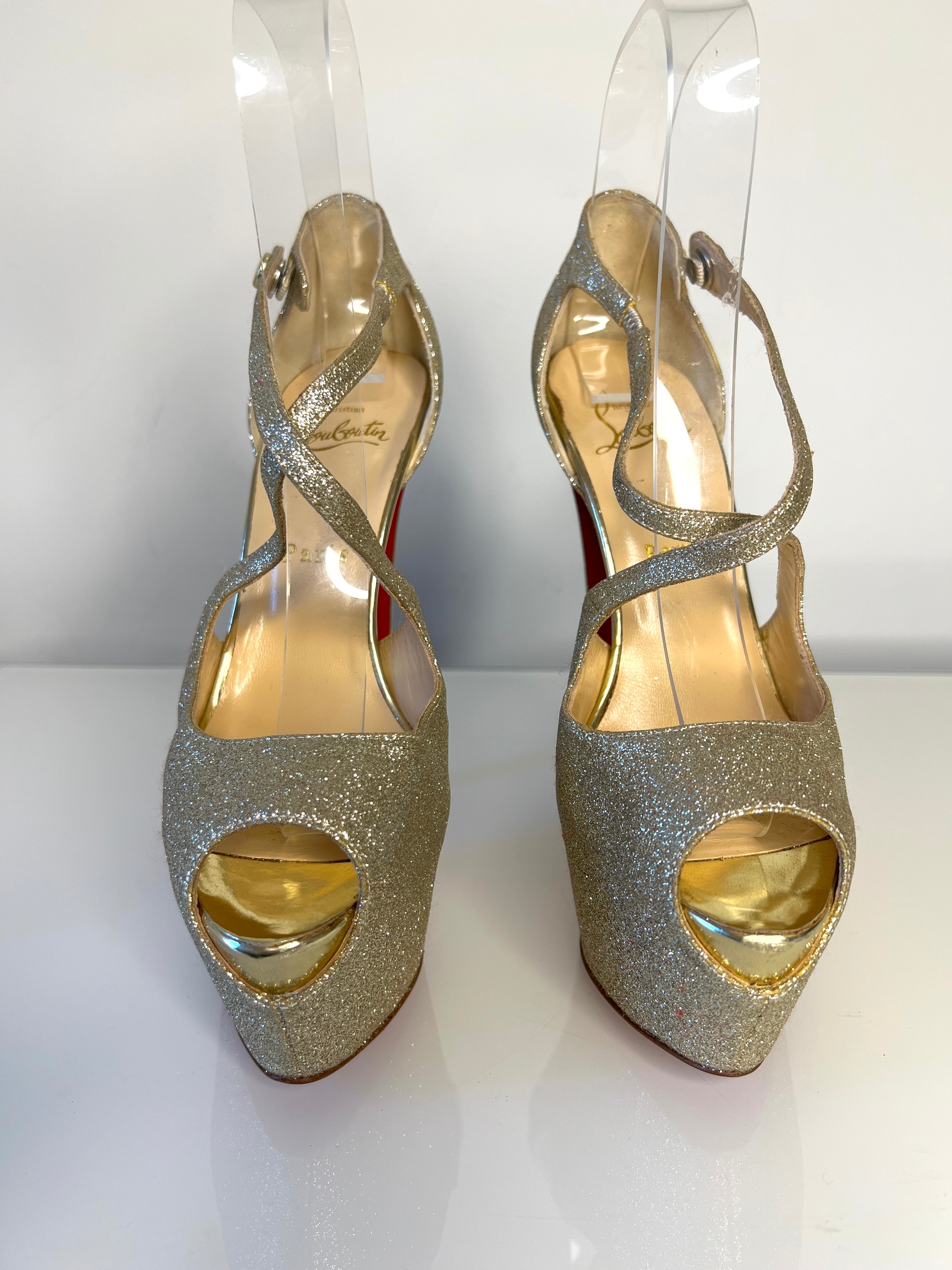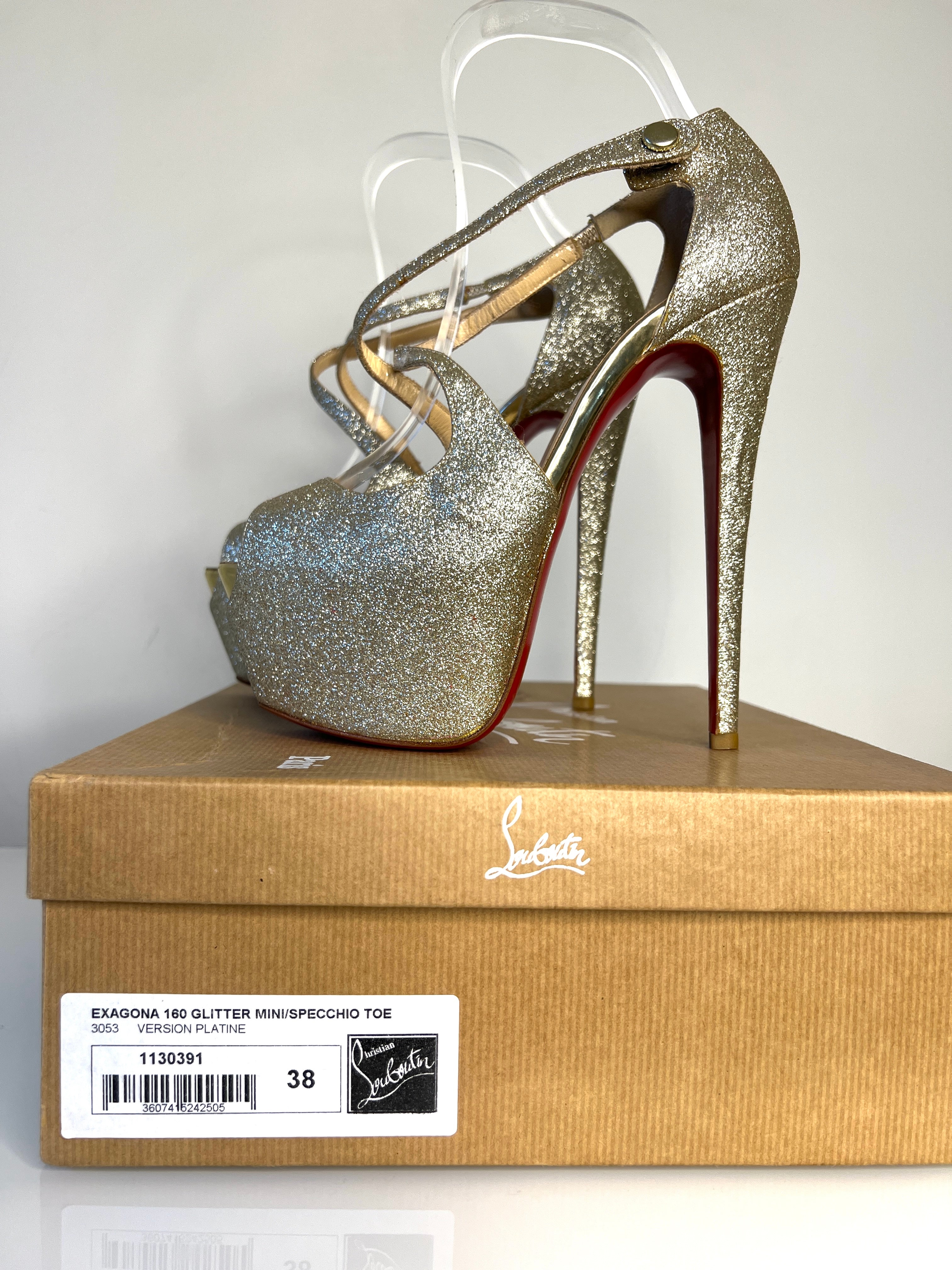 Christian Louboutin Exagona 160 Platine Glitter Platform Heels 38 UK5