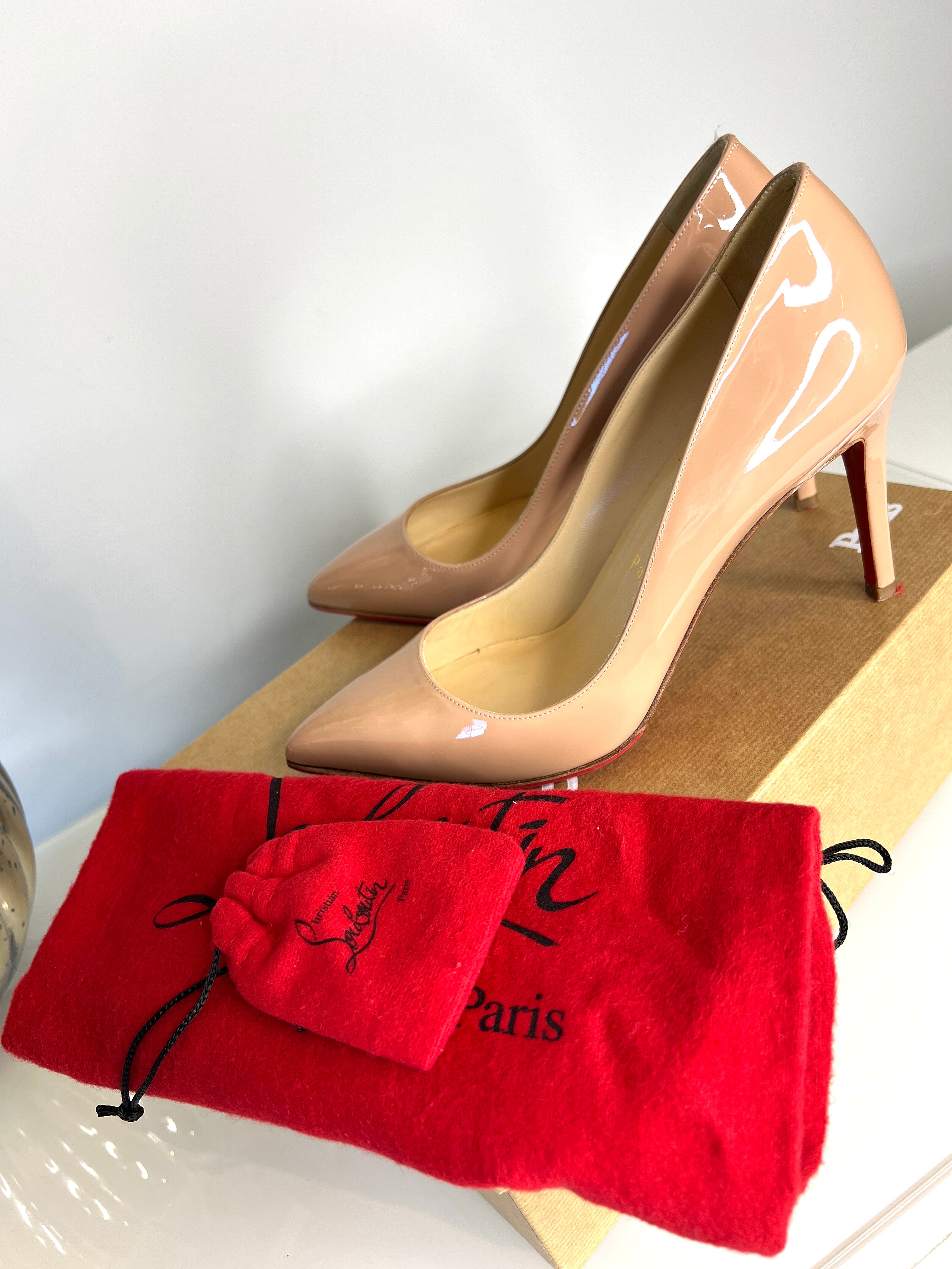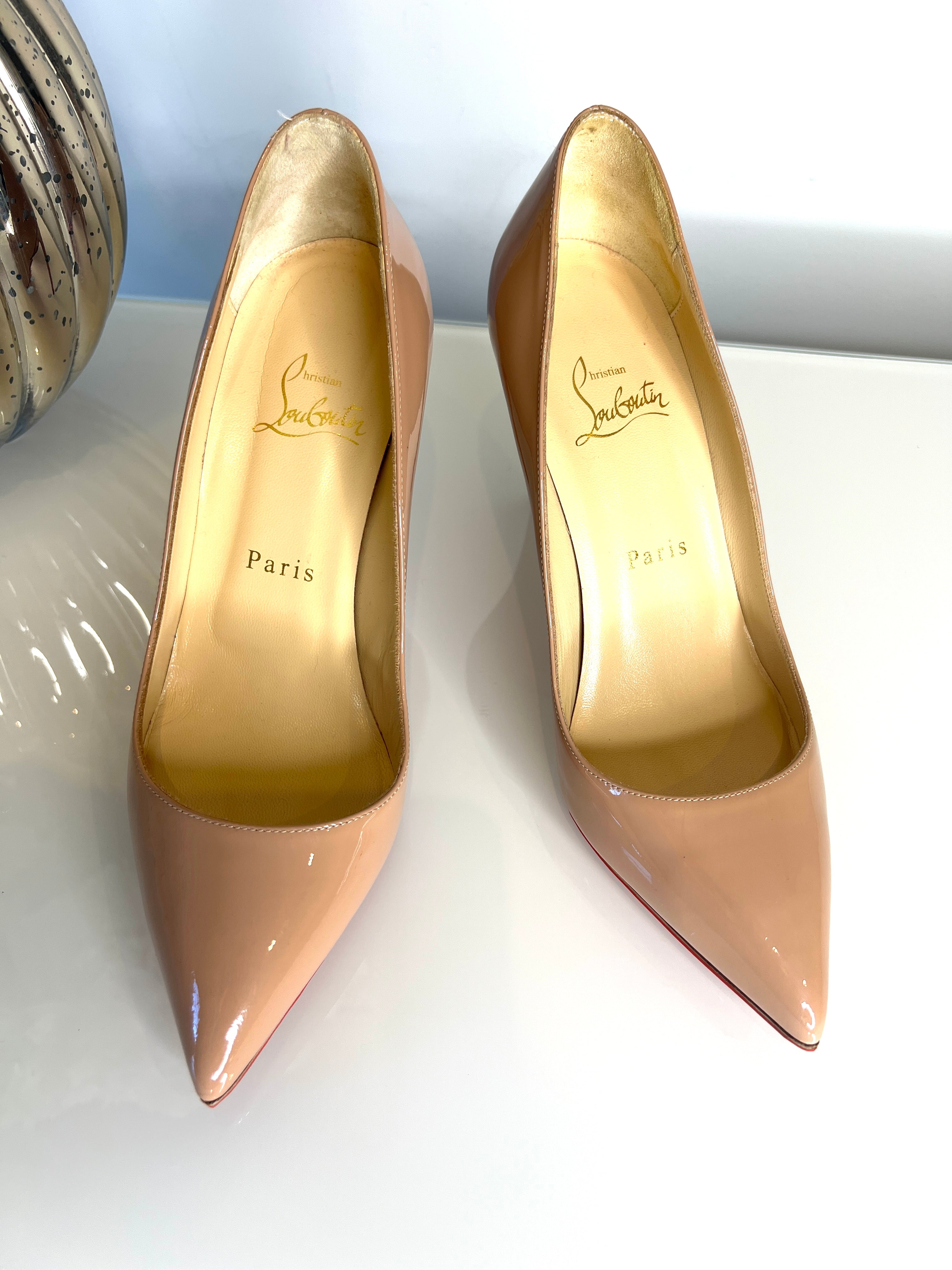 Christian Louboutin Preloved Pigalle 85 Nude Patent Leather Heels 37 UK4