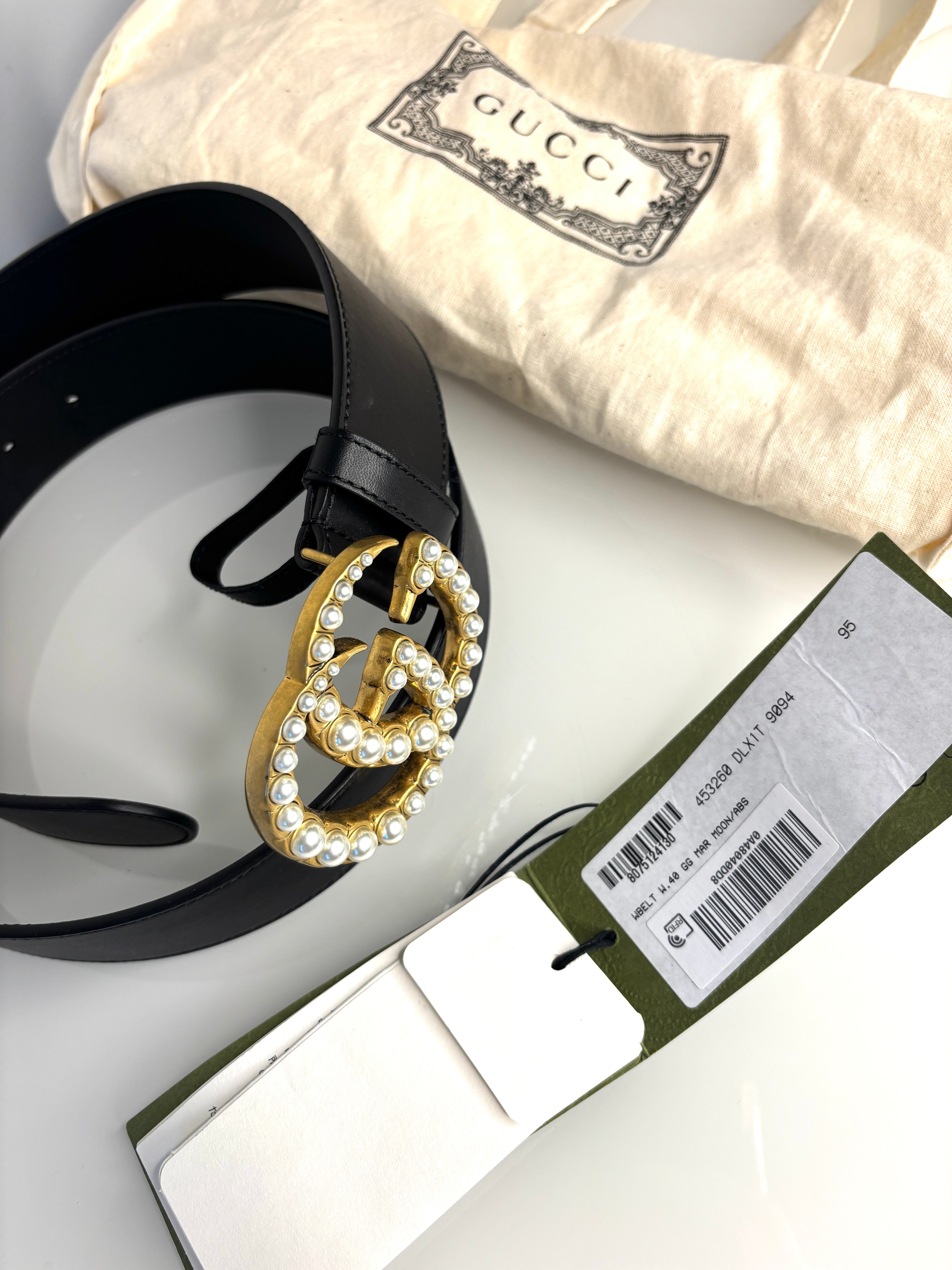 Gucci GG Preloved Pearl Embellished Black Leather Belt