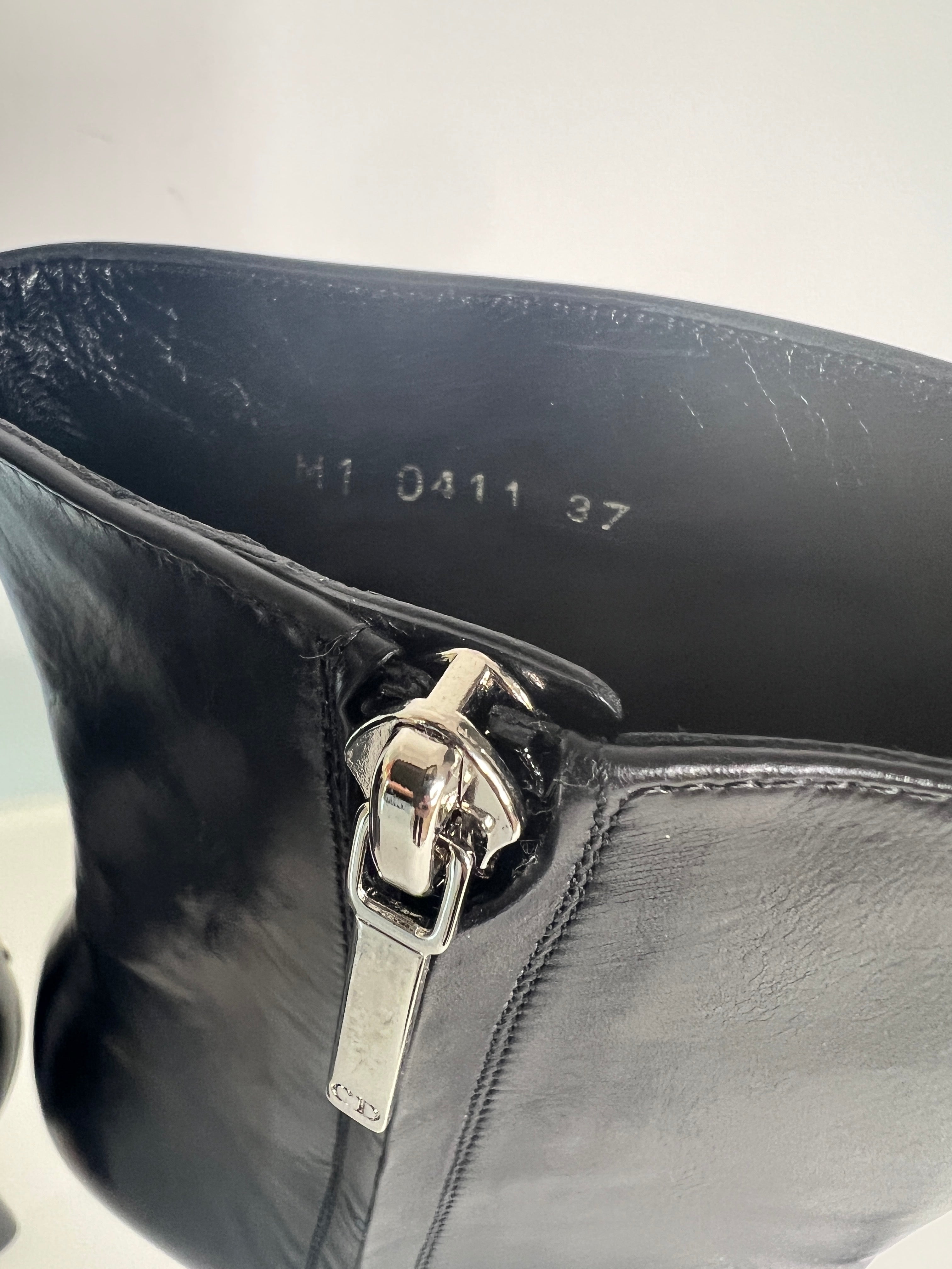 Christian Dior Black Leather Heeled Ankle Boots 37 UK4