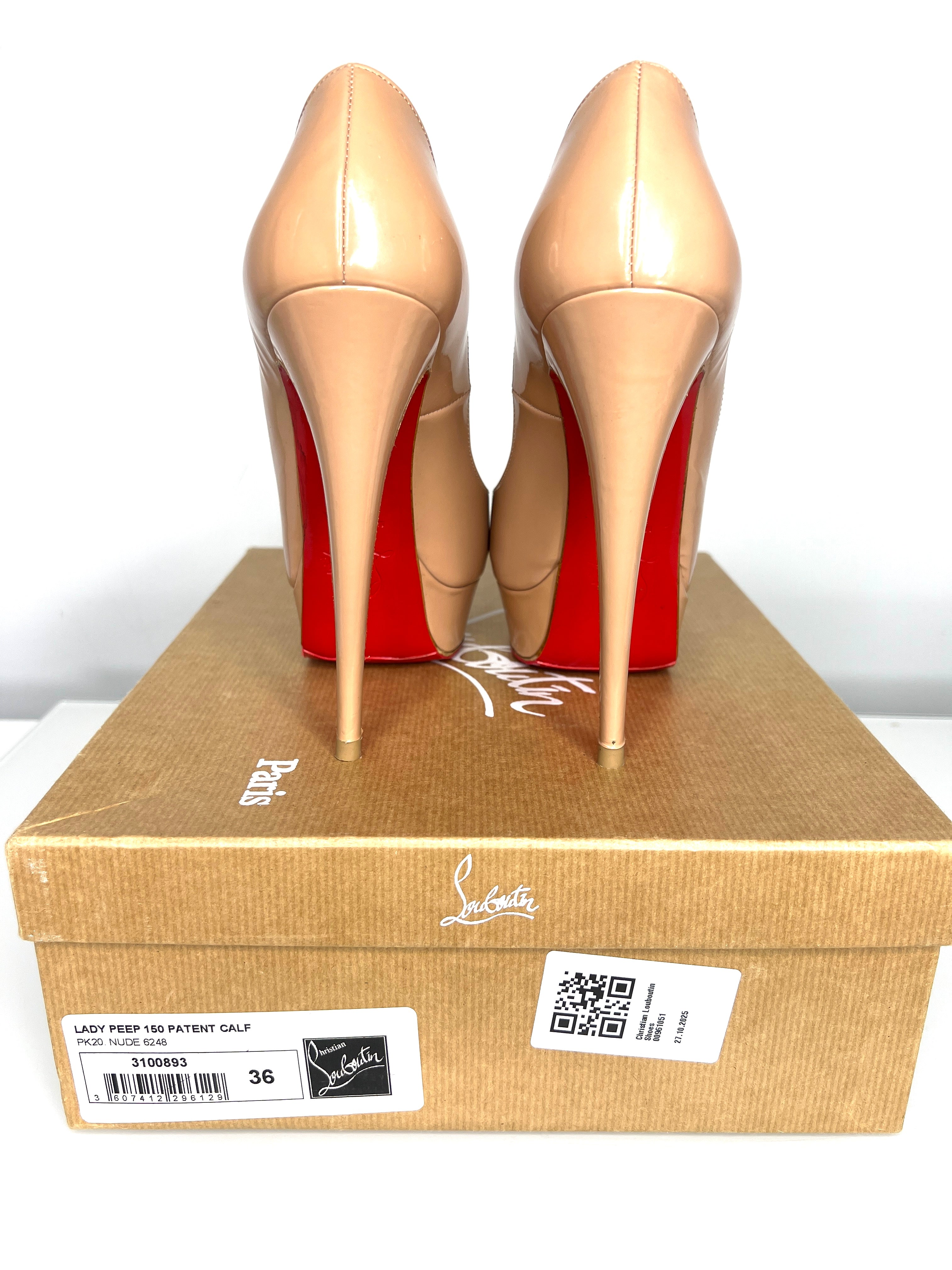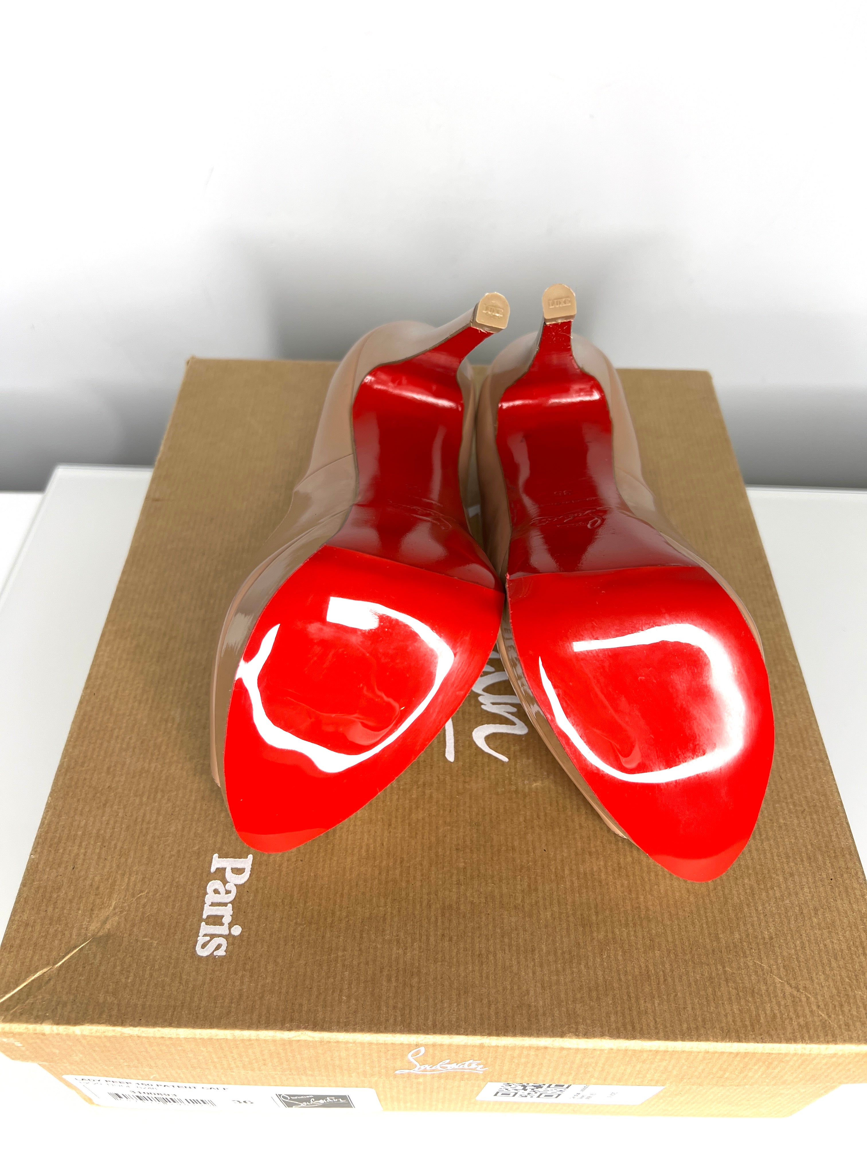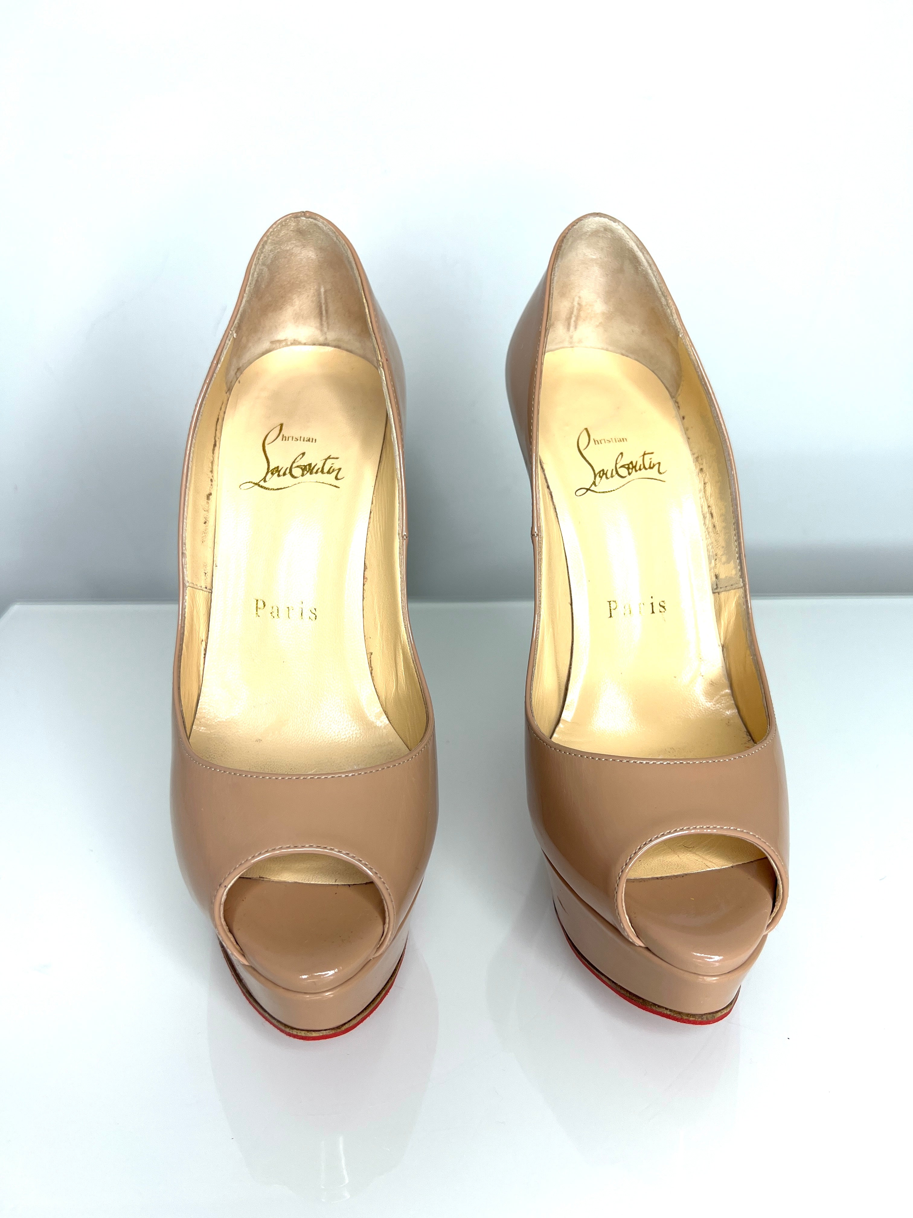 Christian Louboutin Preloved Lady Peep Nude Patent Leather Platform Heels 36 UK3
