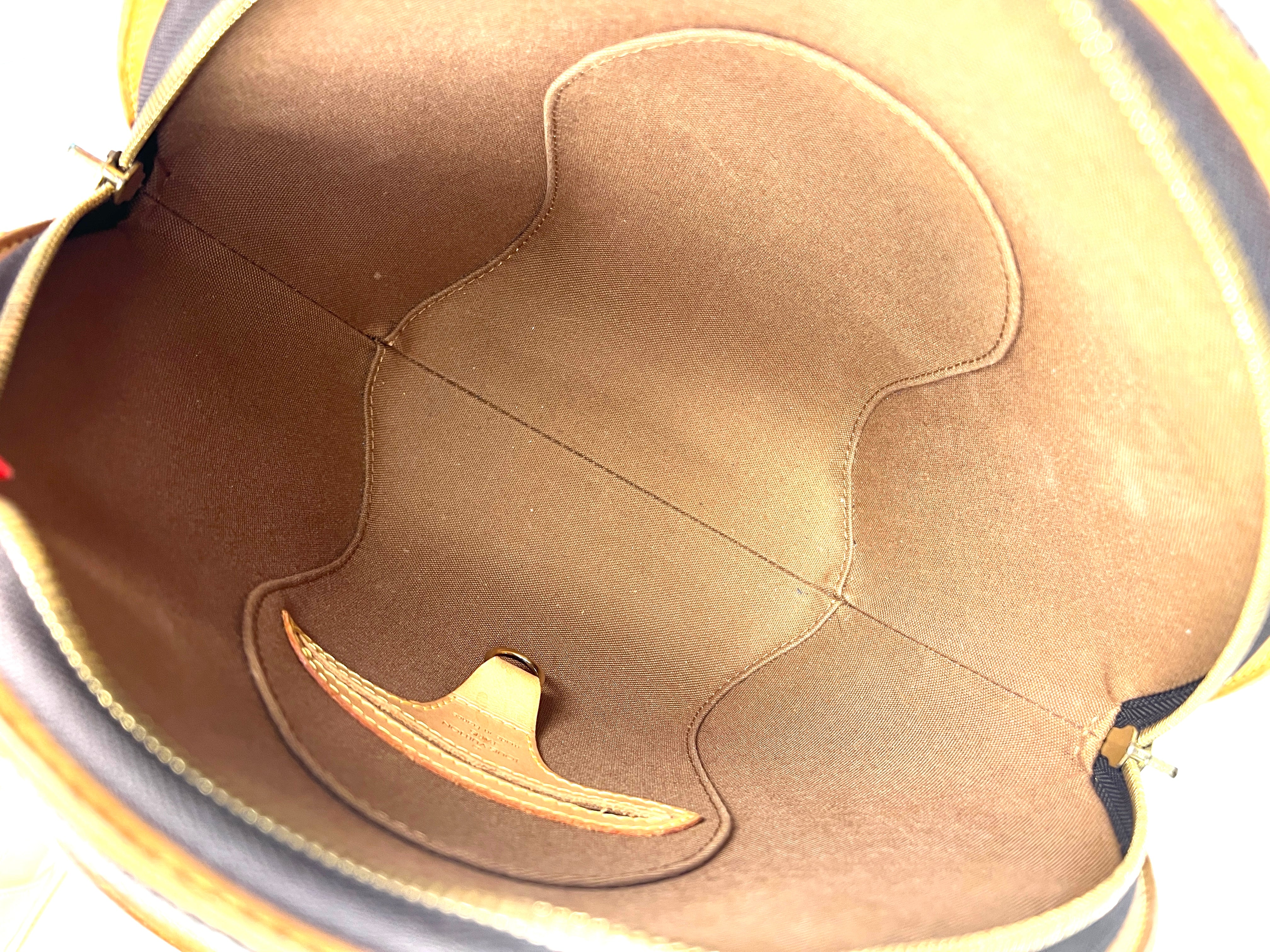 - Condition: The handles and trim have naturally developed a honey beige patina, small watermark on handles and minimal tarnishing on hardware, however the canvas is intact (no racks or rips) and the interior is in immaculate condition. All in all she has been well-maintained and is in very good conditon