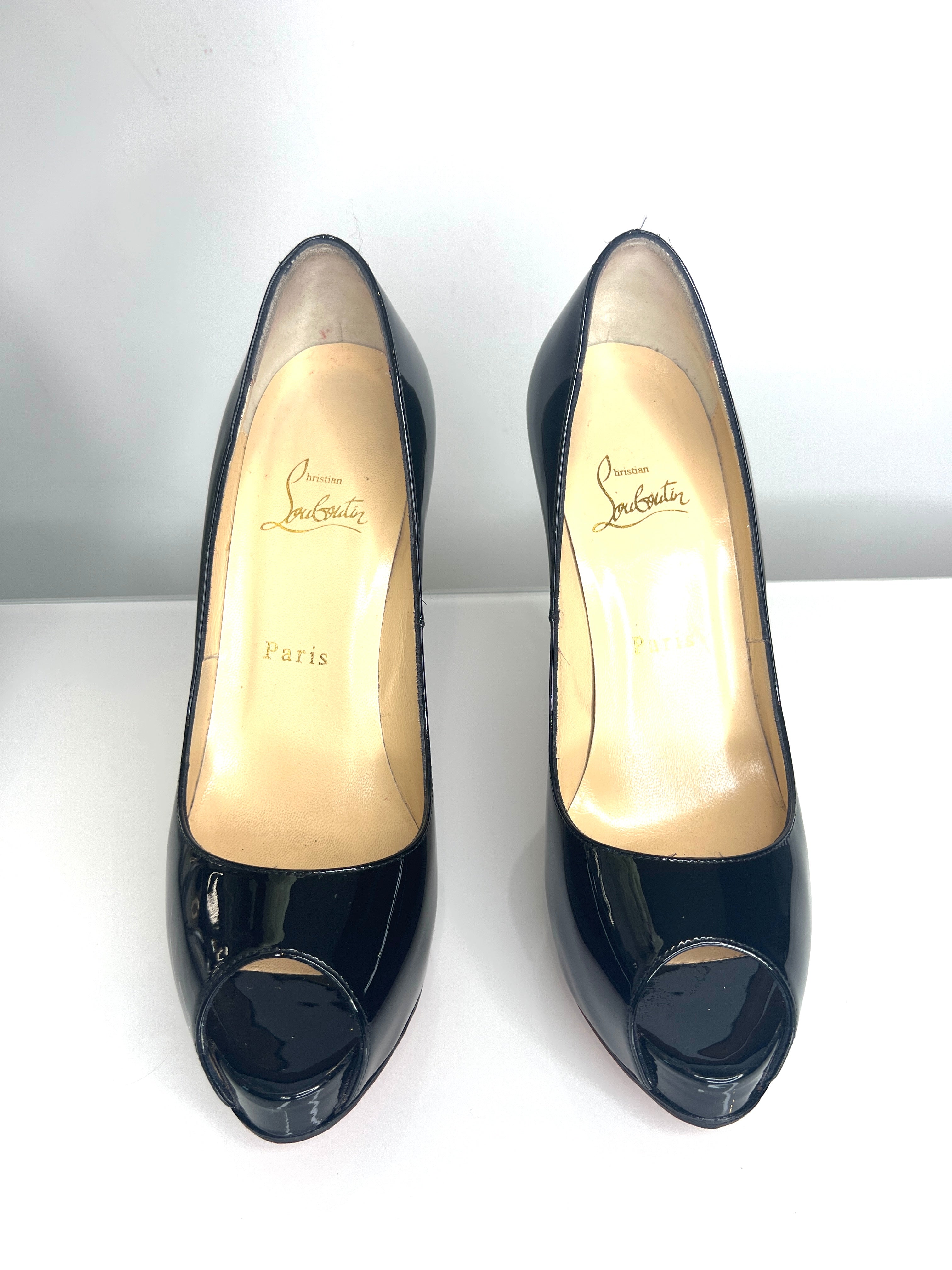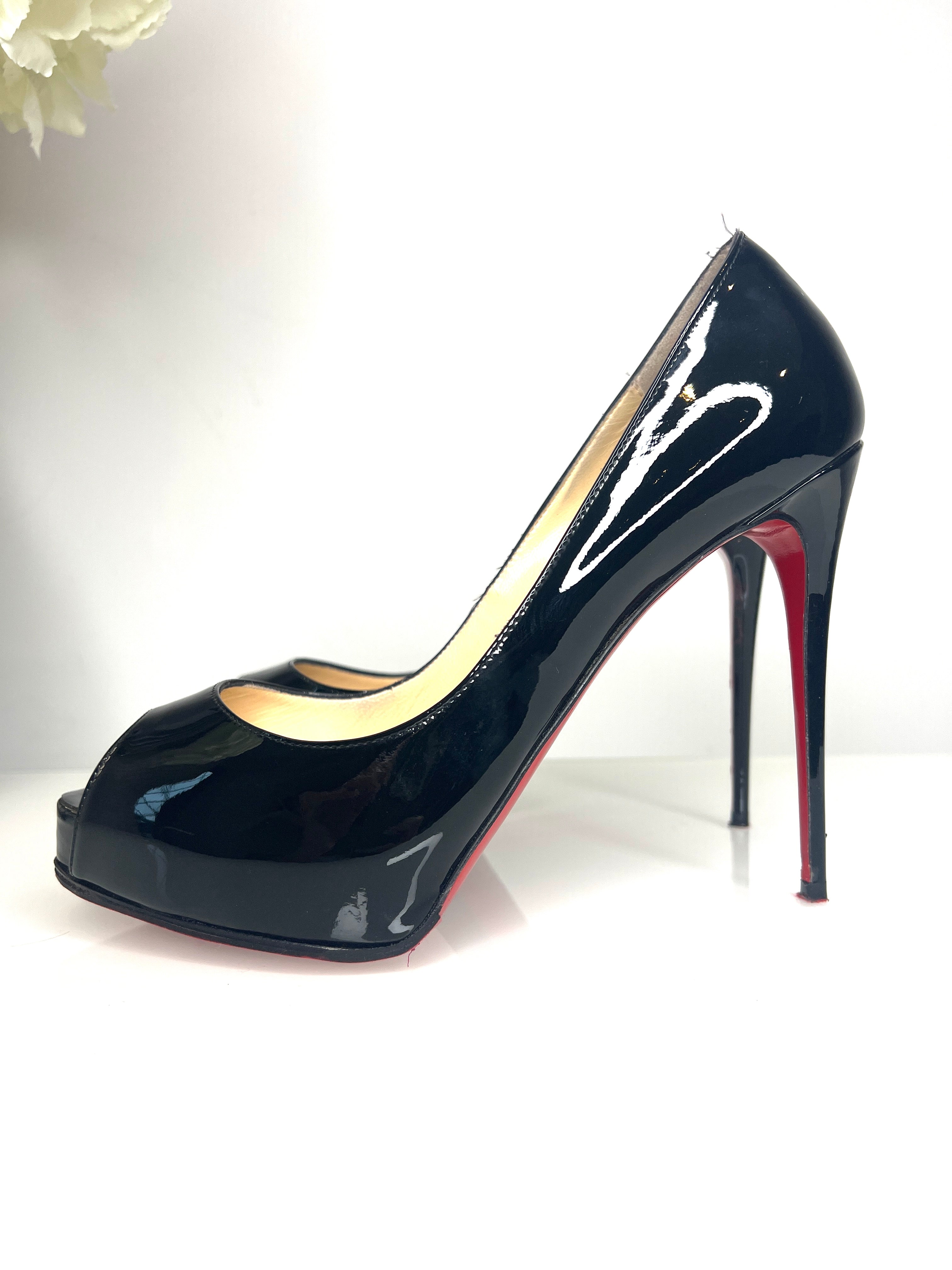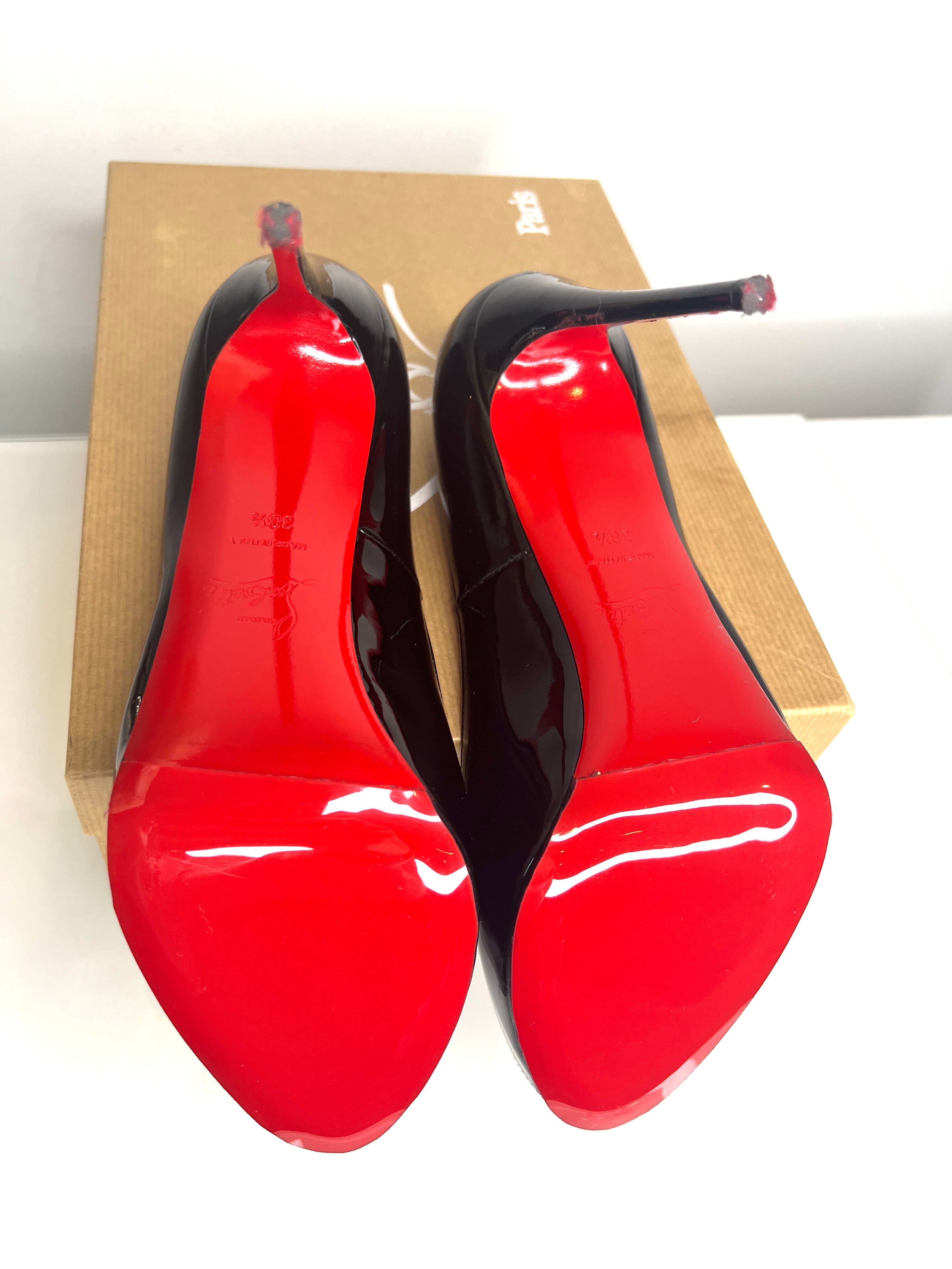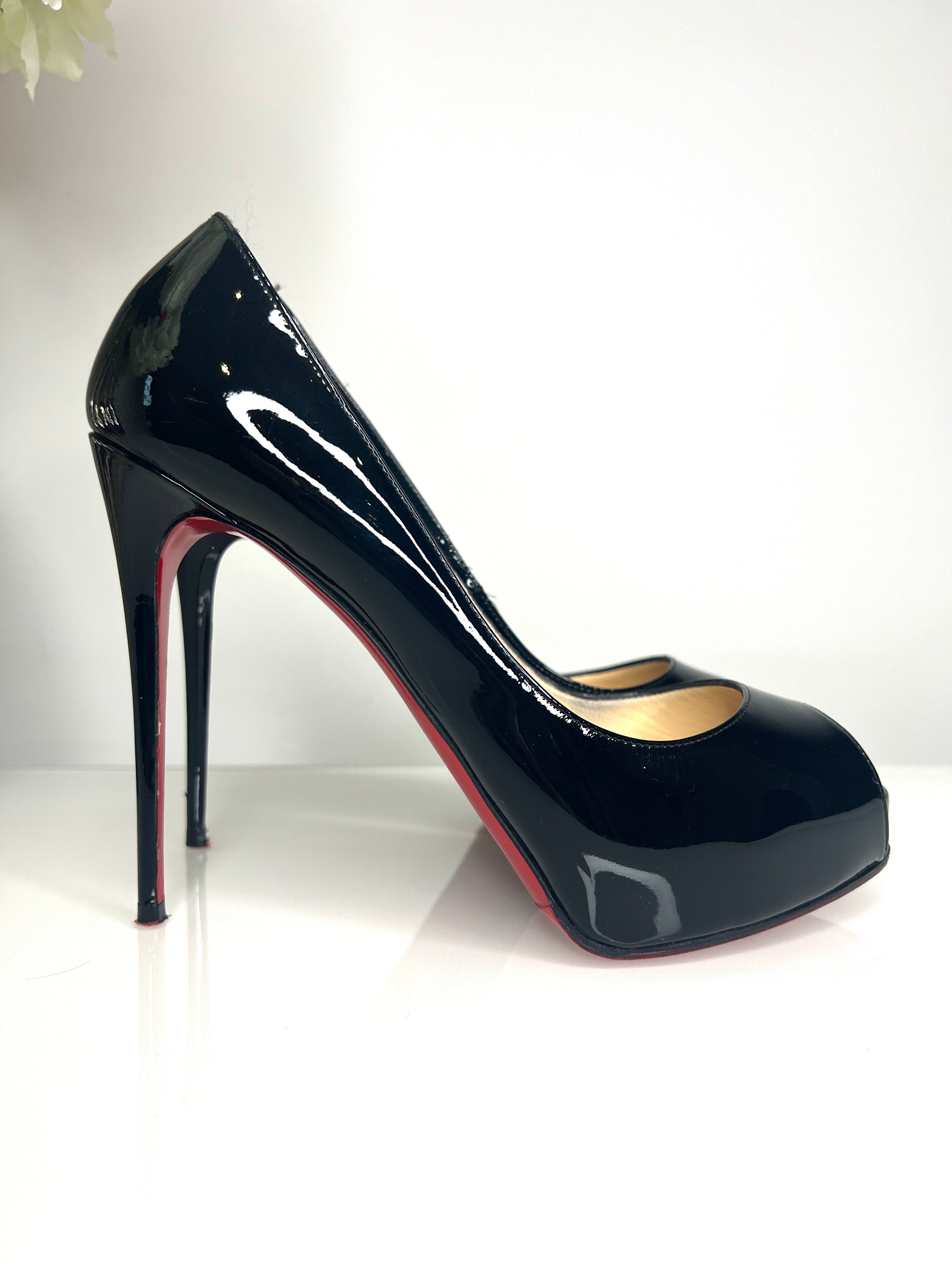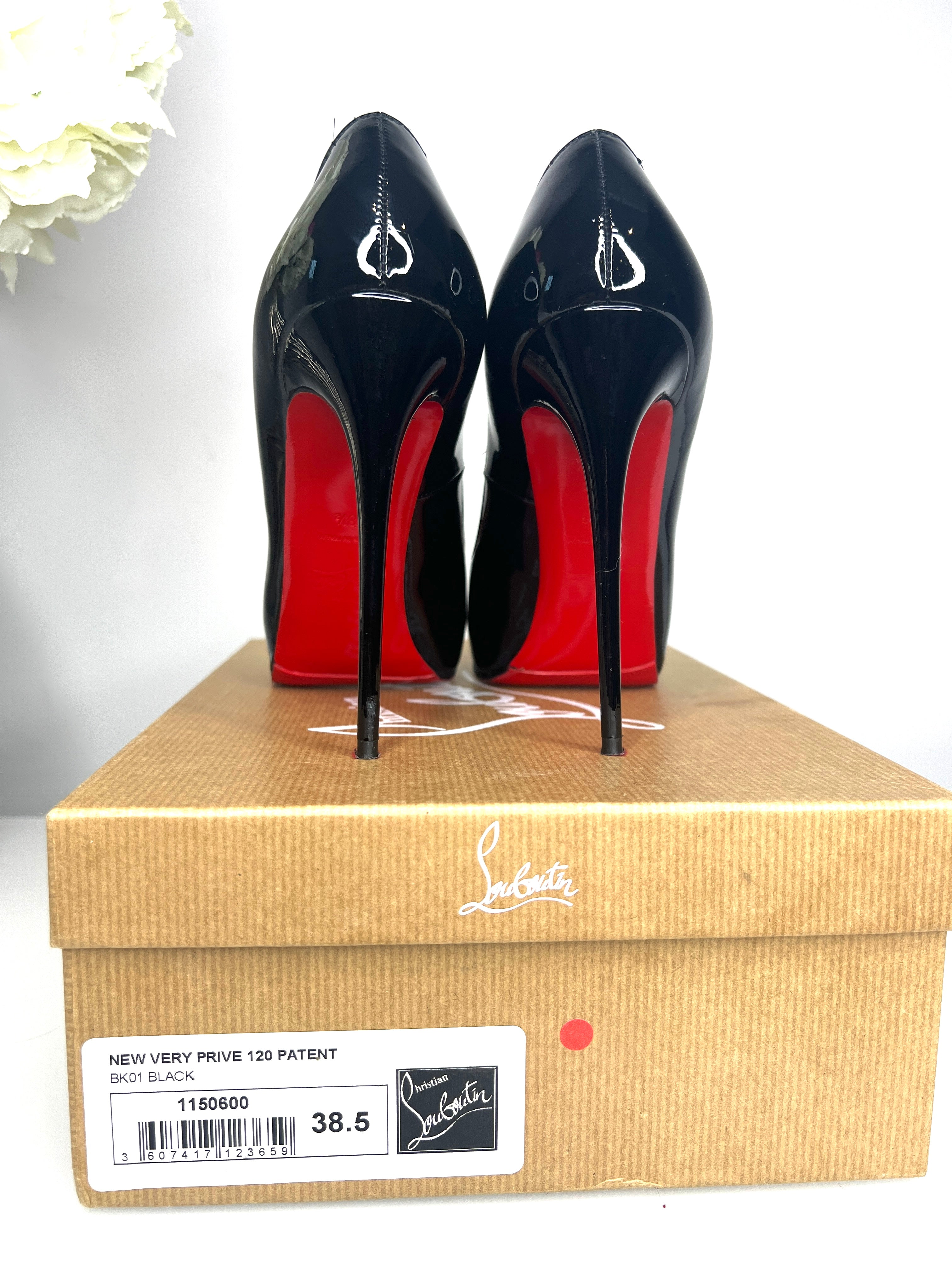 Christian Louboutin Pre-Loved New Very Prive 120 Black Patent Platform Heels 38.5 UK5.5