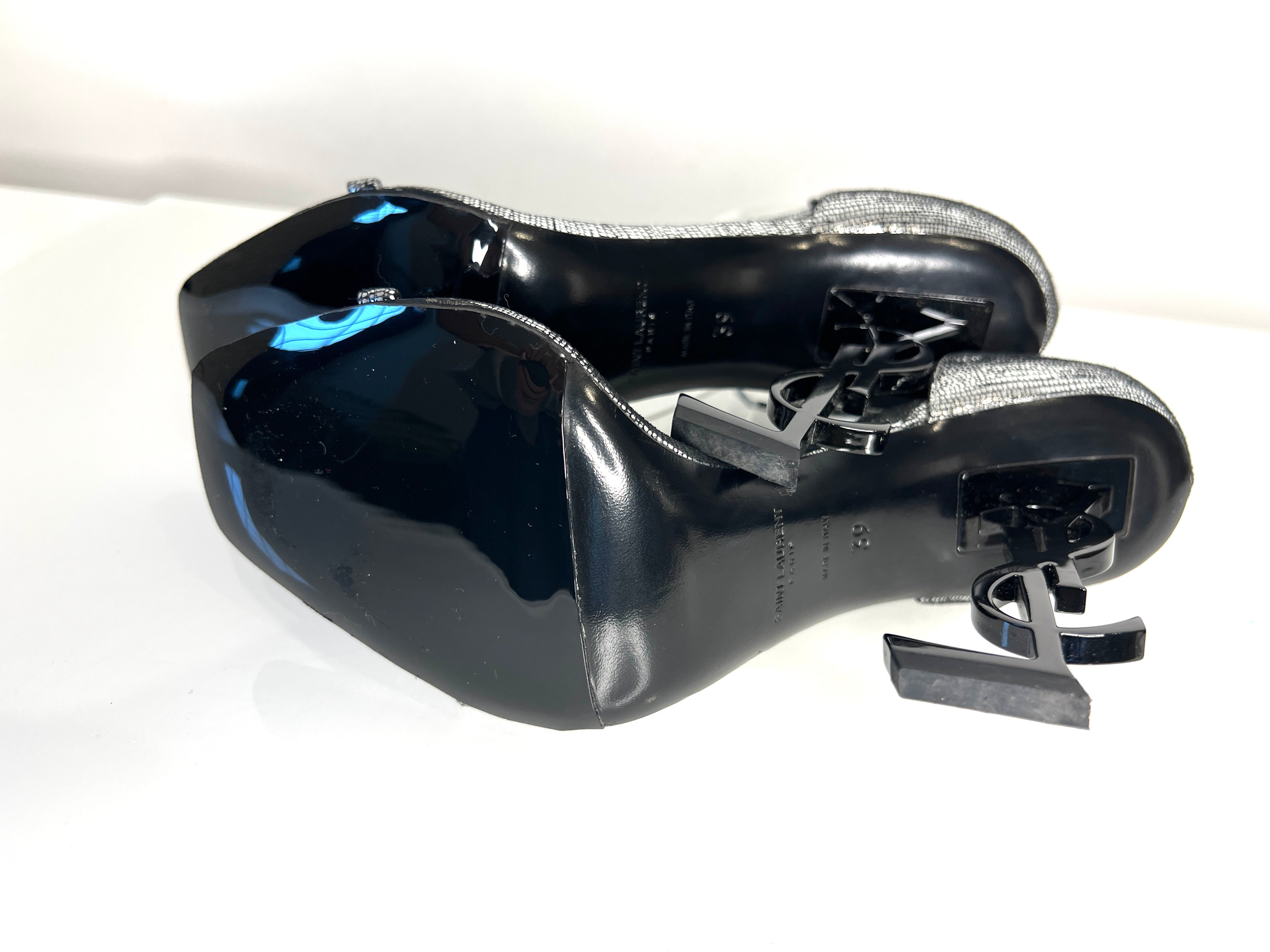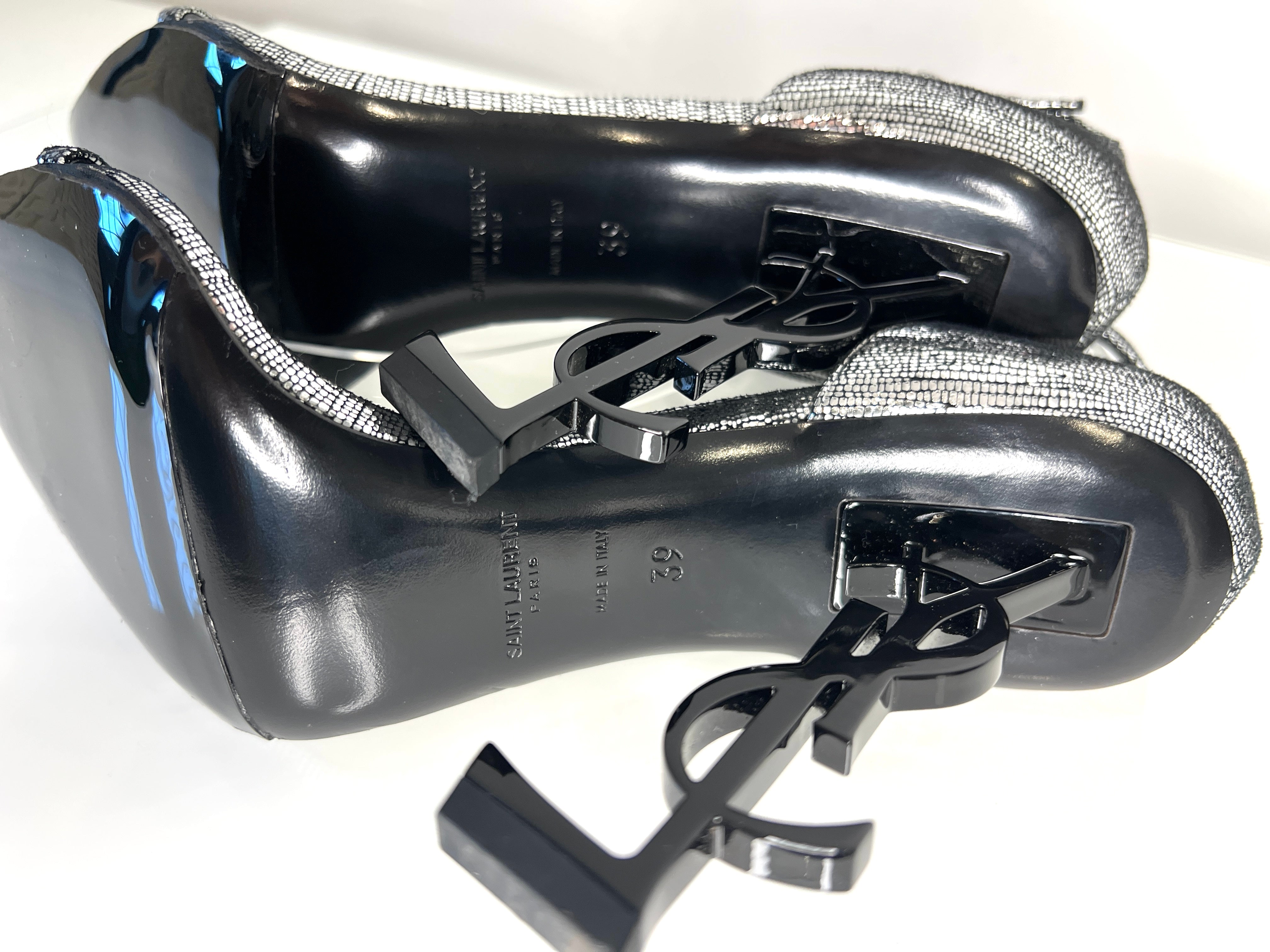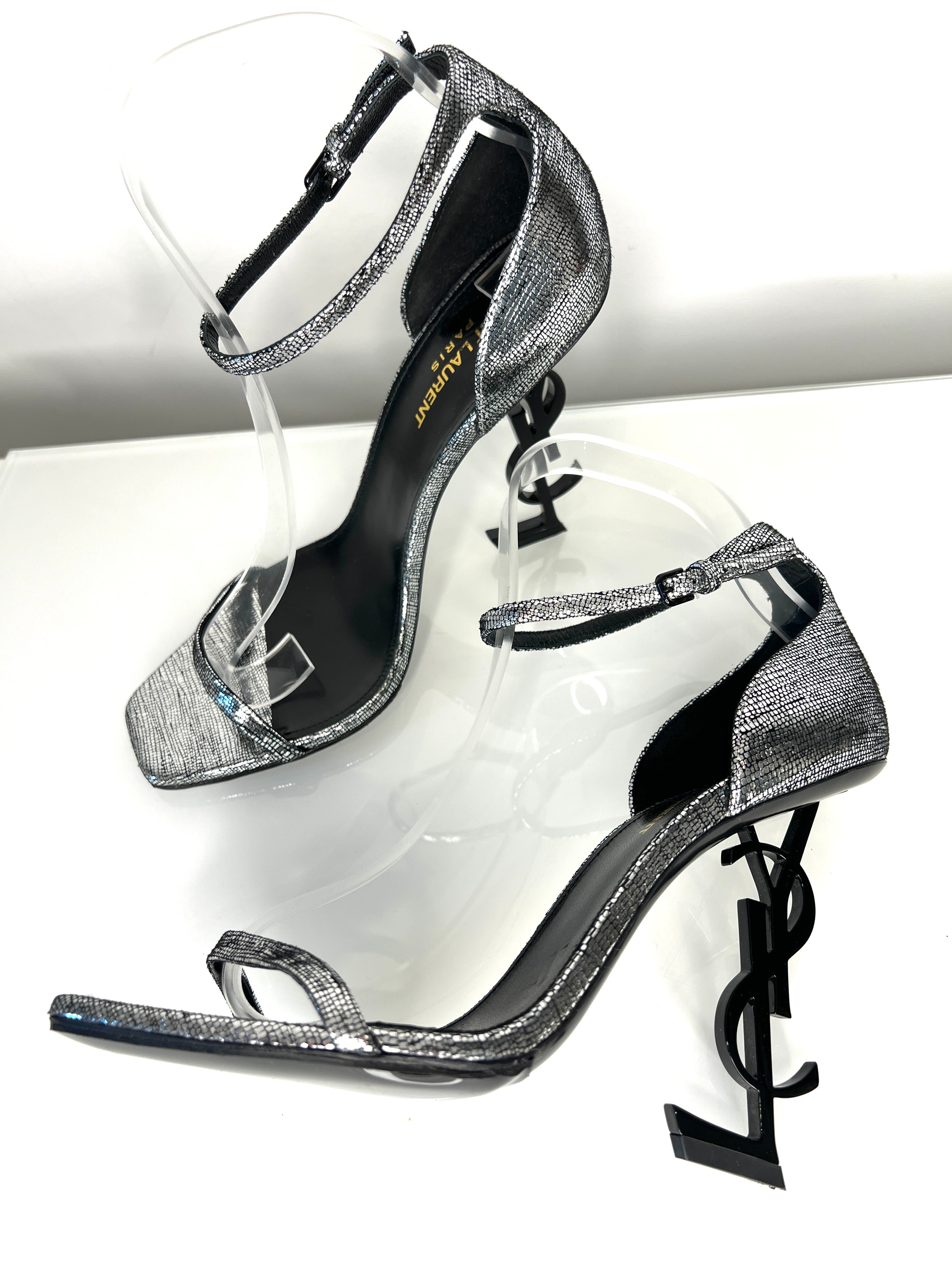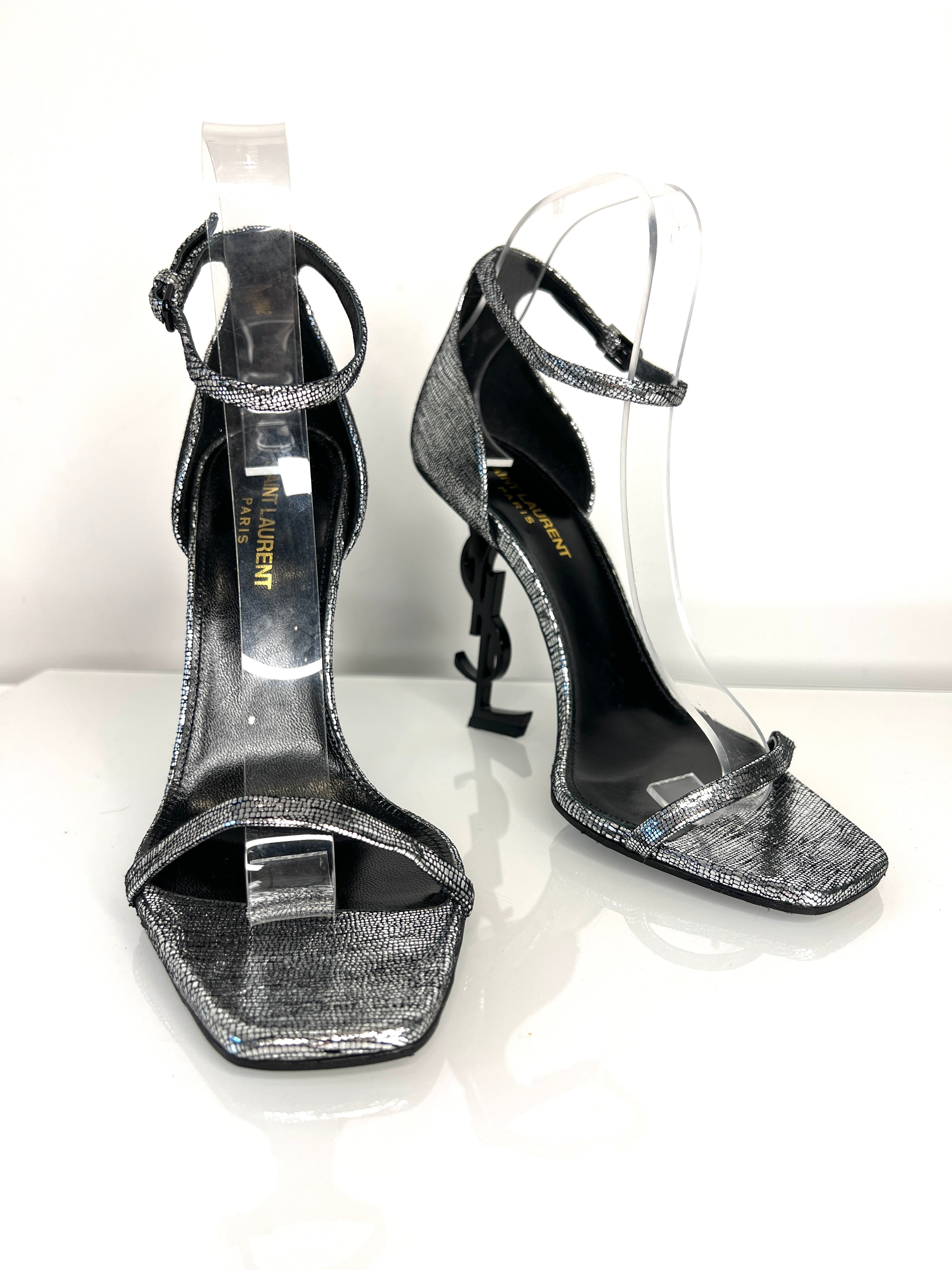 Saint Laurent Opyum Silver YSL Heel Sandals 39 UK6
